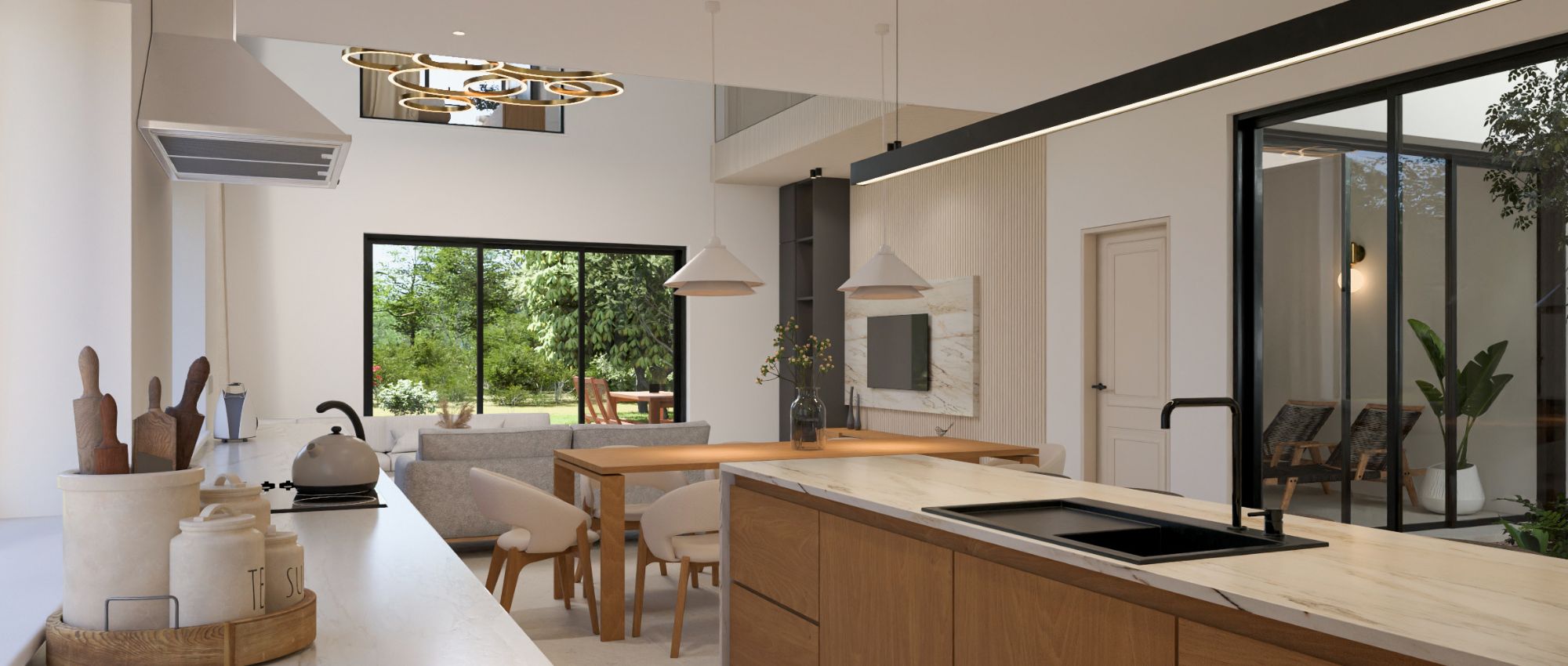 Na taj način kuća, unatoč poluugrađenom konceptu, dobiva prepoznatljiv karakter i kvalitetu života kakvu investitori očekuju – spoj modernog oblikovanja, prirodnih elemenata i luksuza unutar vlastitog doma.