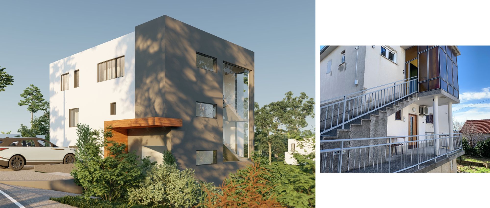 Projekt rekonstrukcije obiteljske kuće iz 70-ih godina prošlog stoljeća pretvorio je dotrajalu građevinu s dva stana u suvremeni životni prostor prilagođen današnjim standardima stanovanja, s dogradnjom trećeg stana umjesto tavanskog prostora.